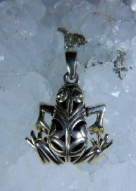 This amulet displays the Goddess with raised arms and a spiral pattern marking her womb. Has cord. Pewter. 1 1/2″ x 1/2″. Made in USA